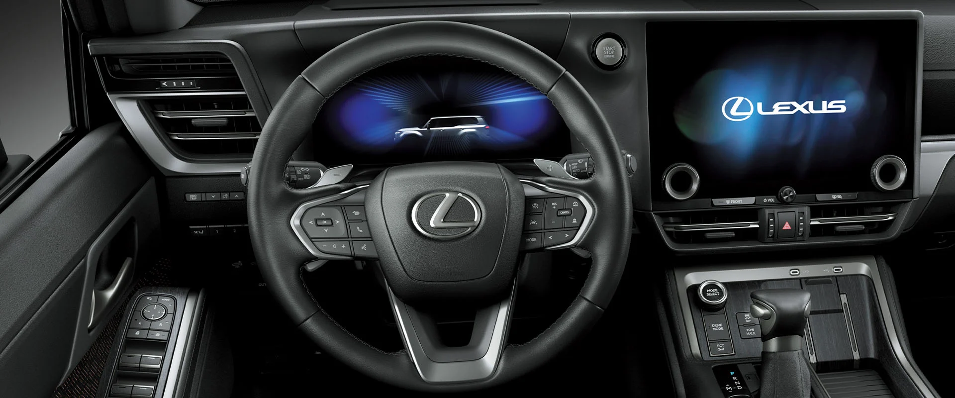 Lexus GX 550 Luxury trang bị vô lăng 3 chấu bọc da, tích hợp nút điều khiển đa năng. Đồng hồ lái nâng cấp màn hình kỹ thuật số 12,3 inch.